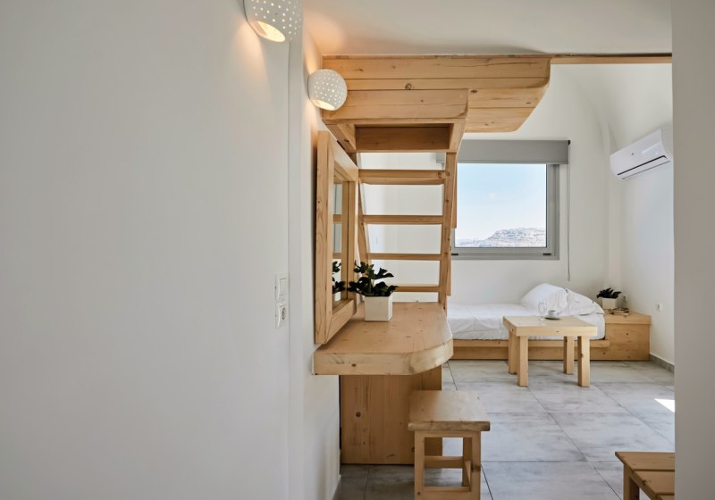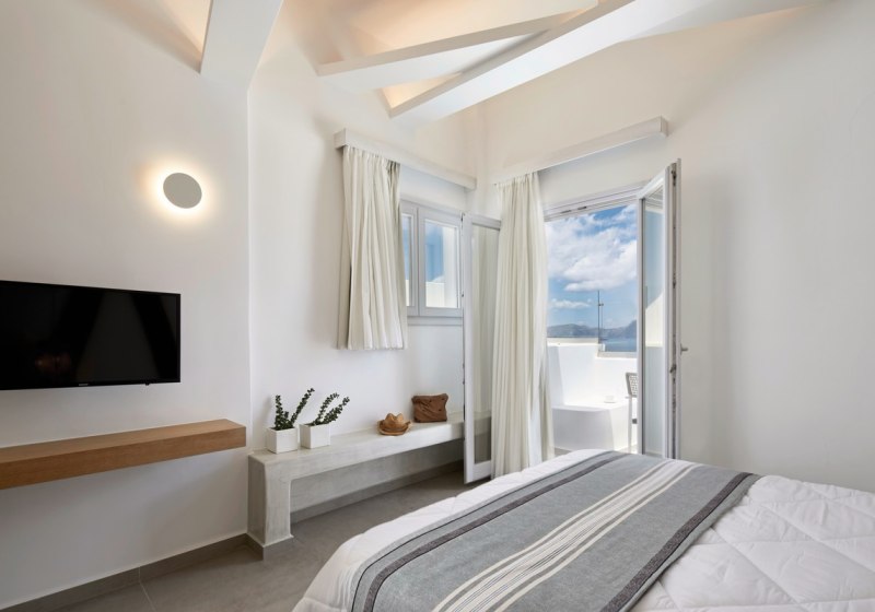 Im Santorini View Hotel by Highlight zieht Euch die ikonische Caldera schon beim Ankommen in den Bann. Die Anlage thront in Hanglage, überschaubar mit 35 Wohneinheiten und bewusst geradlinig gehalten. Ihr bewegt Euch zwischen Sonnenterrasse und Pool, schaut auf das Wasser und erlebt das Haus als Rückzugsort für ruhige Tage zu zweit oder mit Freundinnen und Freunden. Die Atmosphäre wirkt intim, die Wege sind kurz, die Ausrichtung klar: ab 16 Jahren, fokussiert und unaufgeregt.