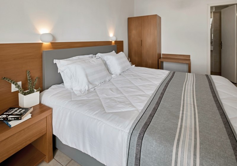 Die Anlage ist kompakt und klar strukturiert: 35 Wohneinheiten, Sonnenterrasse und ein Pool mit Liegen und Schirmen. WLAN steht in der gesamten Anlage bereit, die Rezeption ist von 8:00 bis 0:00 Uhr besetzt. Hotelsafe, Gepäckraum und Parkplatz sorgen für pragmatische Sicherheit und kurze Wege im Alltag im Urlaub.