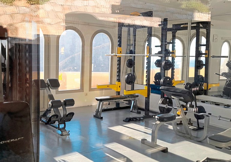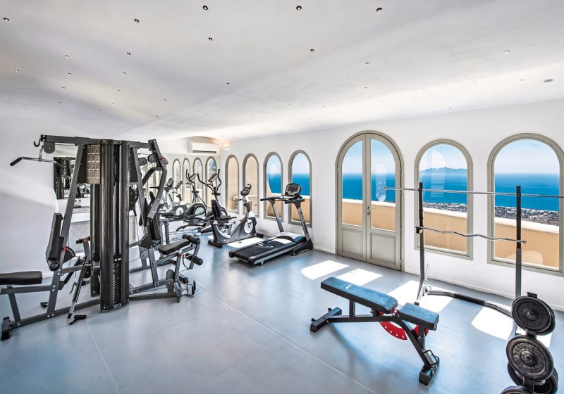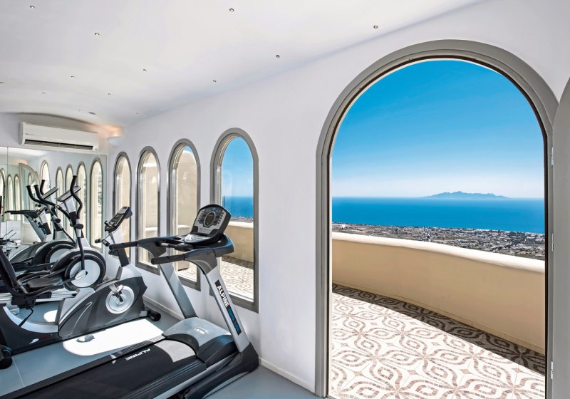 Als Aktiv-Akzent steht Euch ein Fitnessraum zur Verfügung, ausgewiesen gegen Gebühr. Wer Abwechslung sucht, spaziert nach Pyrgos. Dort erlebt Ihr Atmosphäre und gastronomische Adressen des Dorfes, bevor Ihr in Eure Suite mit Meerblick zurückkehrt.