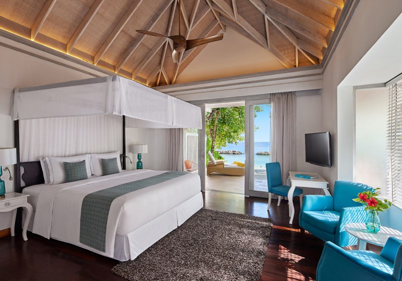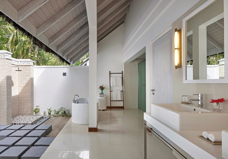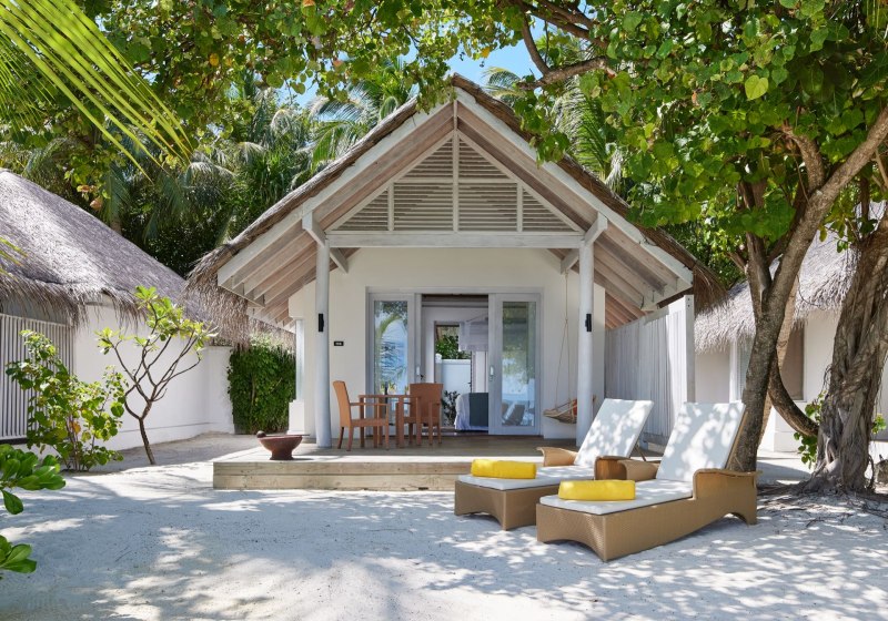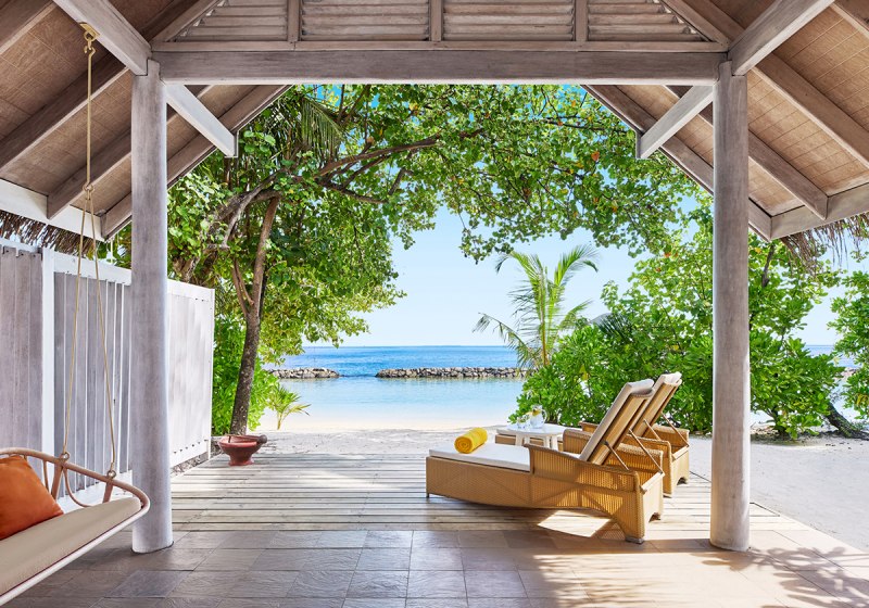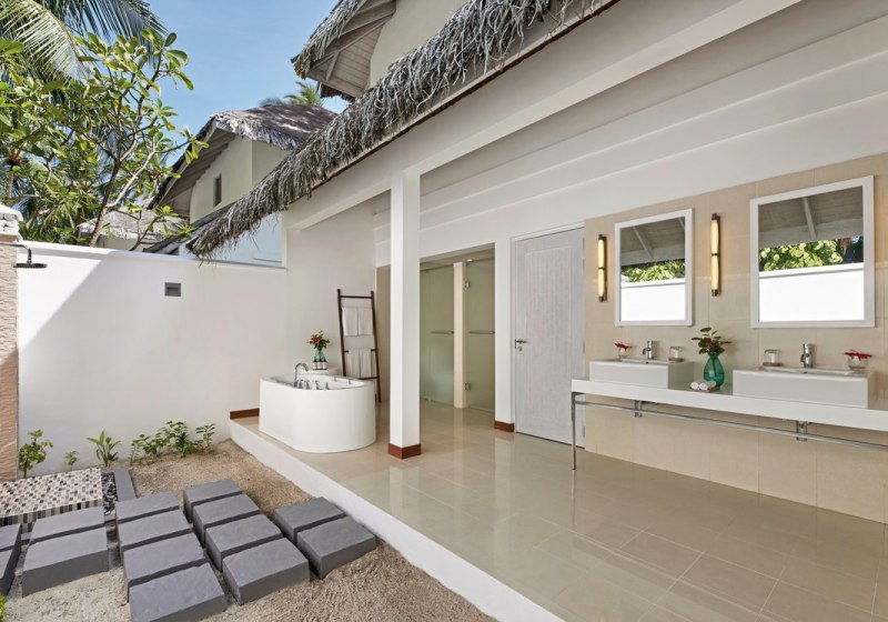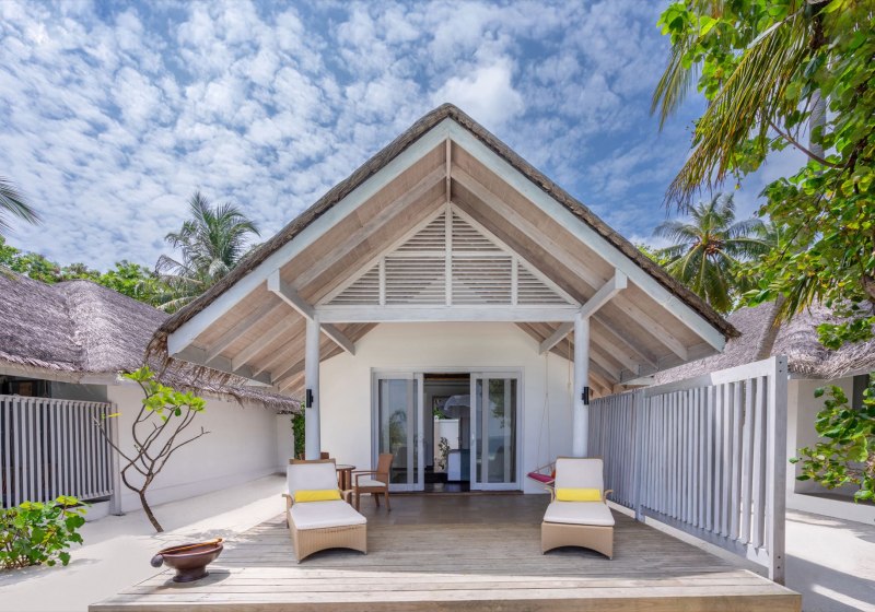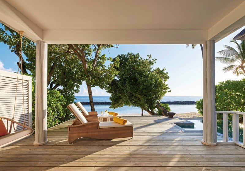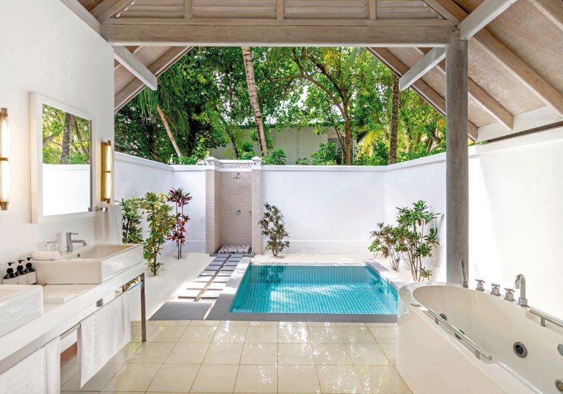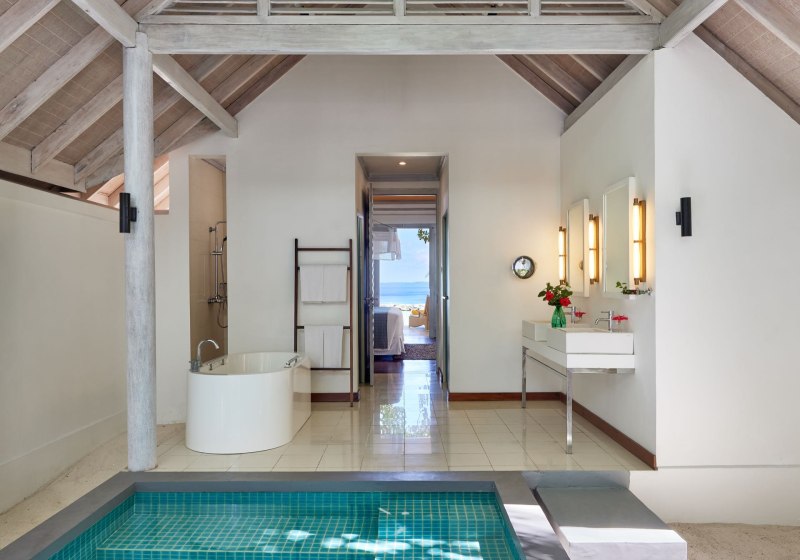 • Beach Villa: Außenbad, Terrasse und privater Plunge-Pool direkt am Strand.
