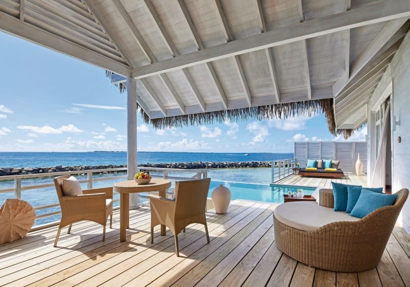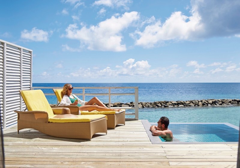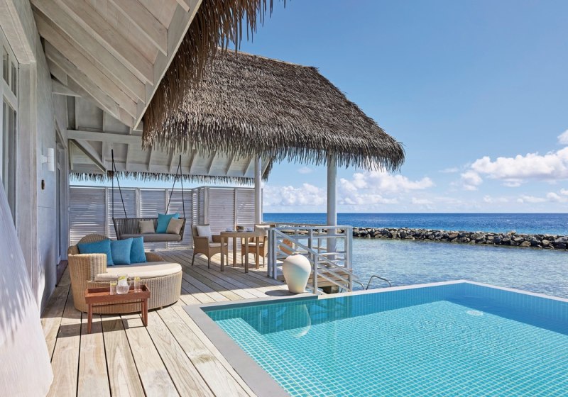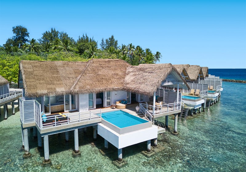 • Overwater: Stelzenvillen mit Pool bieten direkten Einstieg in die Lagune.
