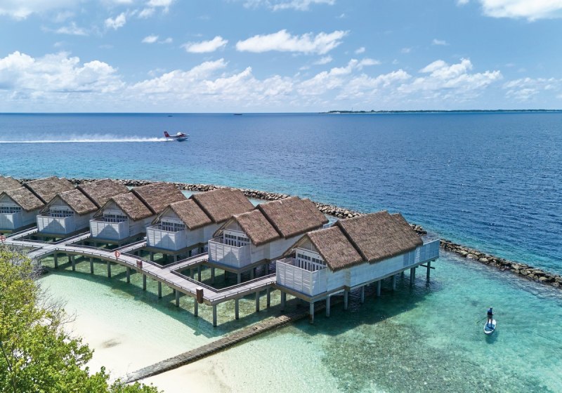 Ihr wählt zwischen entspanntem Inselflow und klar strukturierten Angeboten: Infinity-Pool mit Sonnenterrasse, WLAN in der gesamten Anlage, ästhetisch gestaltete Gemeinschaftsbereiche und gut dosierte Abendunterhaltung. Familien fühlen sich mit Kids Club "The Maxies" gut aufgehoben, Paare steuern die Signature-Villen an Land oder über dem Wasser an. Die Anreise per Wasserflugzeug dauert etwa 25 Minuten – kurz, prägnant, stimmig.