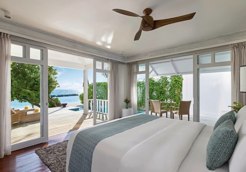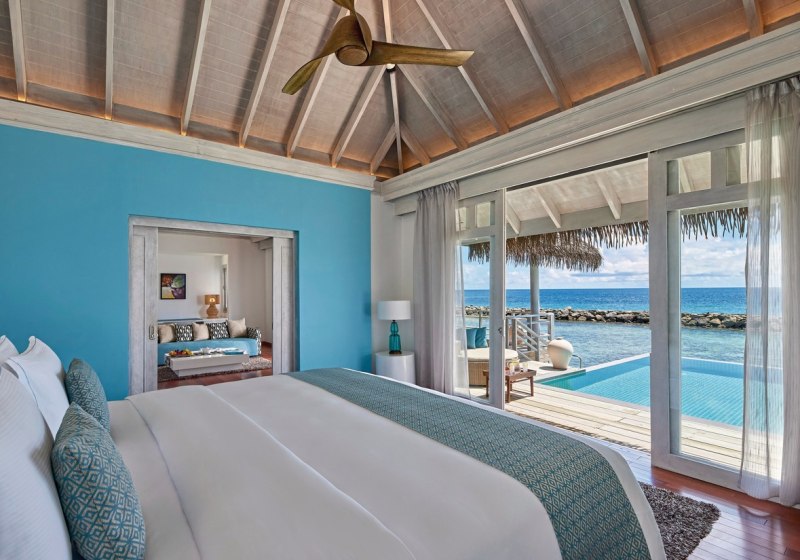 Die Overwater Villa (ca. 118 m²) steht auf Stelzen über dem Meer, mit privatem Plunge-Pool und direktem Zugang ins Wasser. Großzügig wird es in der Beach Duplex Suite (ca. 231 m²) über zwei Etagen mit direktem Strandzugang und eigenem Plunge-Pool. Ihr entscheidet zwischen Strandgefühl, überwasserlichem Weitblick und raumgreifender Suite-Struktur.