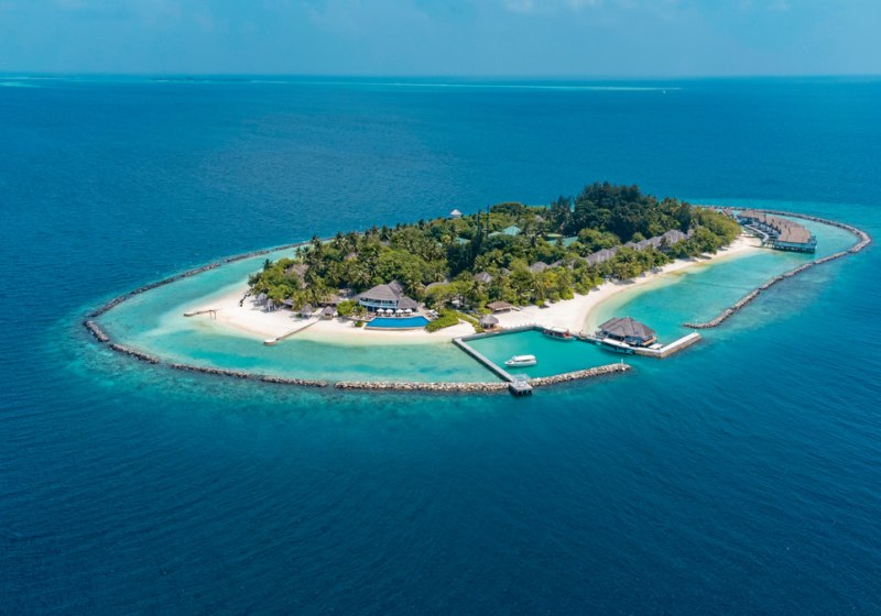 Im NH Maldives Kuda Rah Resort findet Ihr ein modernes Insel-Resort, das Ruhe und Aktivitäten glaubwürdig verbindet. Die kleine Insel im südlichen Ari-Atoll misst rund 300 mal 130 Meter, wirkt dadurch überschaubar und angenehm nahbar. Der Blick schweift über helle Strände, das tiefblaue Wasser und das nahe Hausriff, das je nach Stelle nur 20 bis 200 Meter vom Strand entfernt liegt.