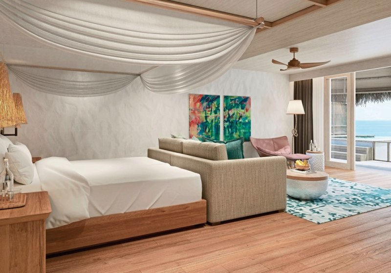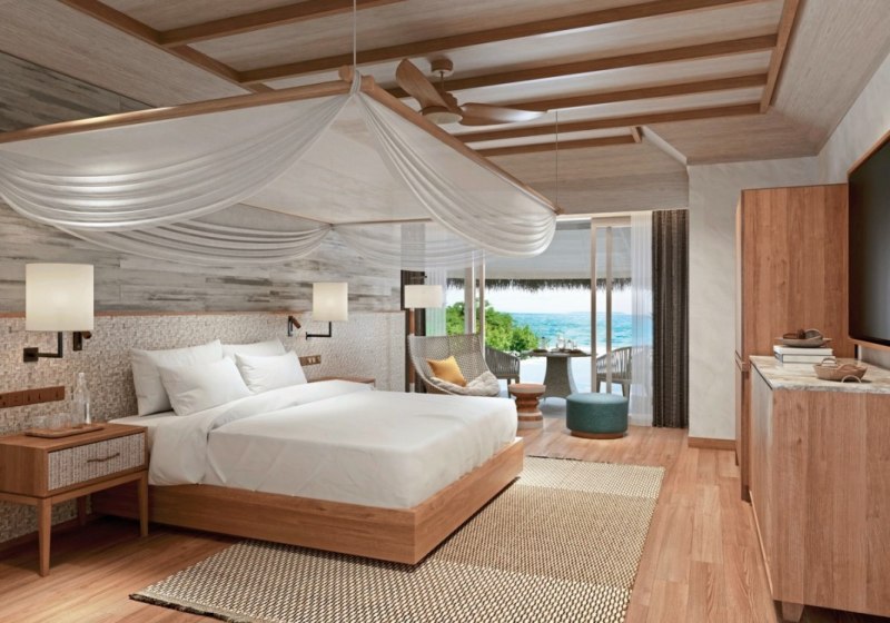 Beach Villas bieten zusätzlich Safe und CD-/DVD-Player; einige Villen verfügen über einen privaten Pool. Die Water Villas stehen auf Pfählen über dem Meer und öffnen den direkten Zugang zur Lagune. So entscheidet Ihr zwischen Strandgefühl oder Wasserperspektive. Highlight: Markante Wasserlage der Villas mit direktem Lagunenzugang.