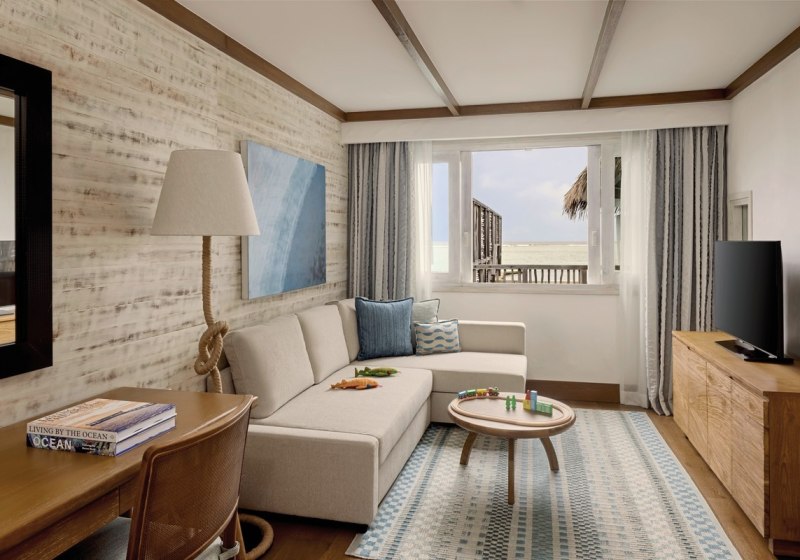 Mit 80 Bungalows und Villen bleibt das Resort überschaubar. Bibliothek, Games Room und Lava-Lounge ergänzen die ruhigen Flächen um Orte für leise Aktivität. So entsteht ein unaufgeregtes Insel-Layout, das Orientierung bietet. Highlight: Kurze Wege zwischen Villa, Strand, Pool und den Aktivitätsbereichen.