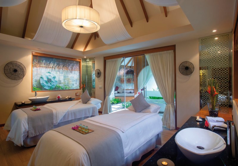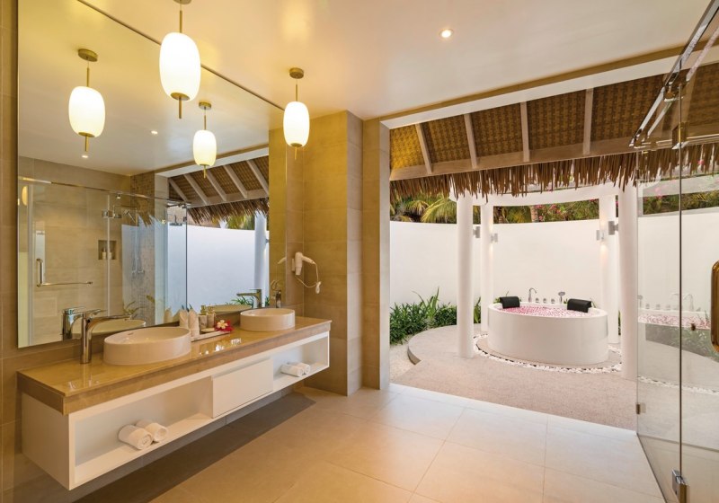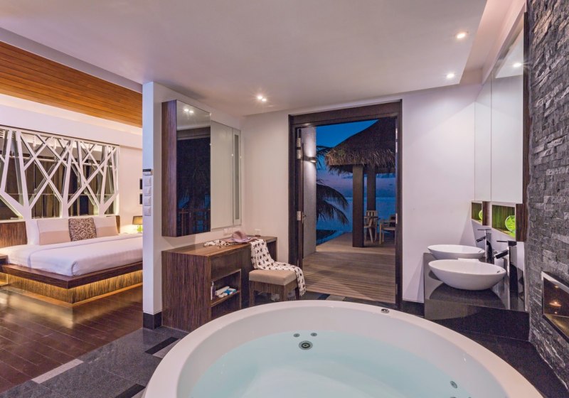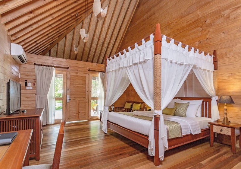 Die Villa Superior liegt bei rund 40 Quadratmetern in doppelstöckigen Gebäuden. Über dem Wasser residiert Ihr in der Sunset Water Pool Villa mit etwa 83 Quadratmetern, auf Stelzen, inklusive privatem Pool und Whirlpool-Badewanne. Besonders großzügig präsentiert sich die Premium Beach Villa mit rund 109 Quadratmetern und Whirlpool. So stimmt Ihr Komfort und Lage präzise auf Eure Wünsche ab.