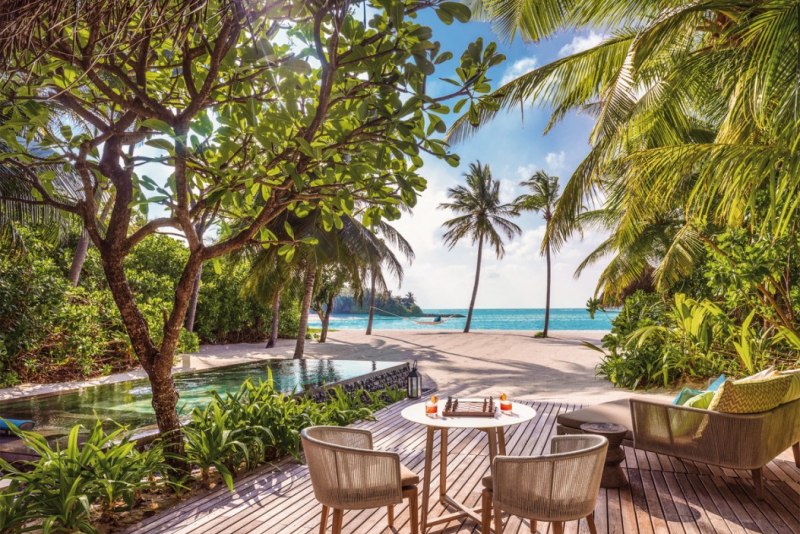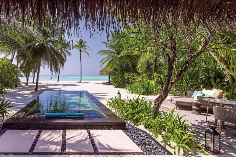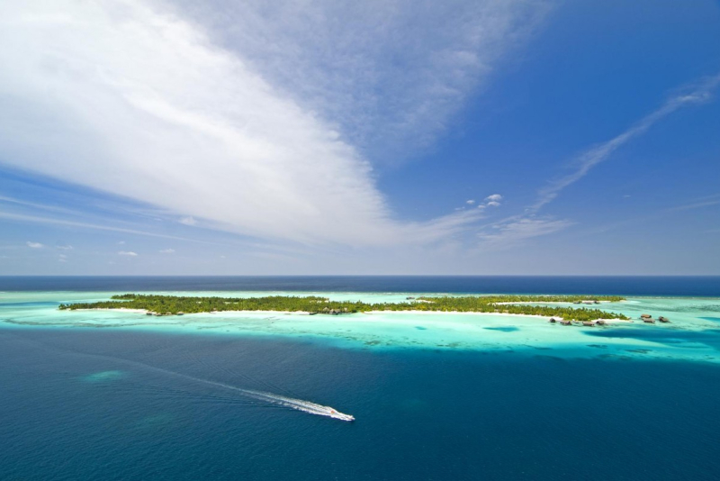 Das Resort liegt direkt am Strand, auf einer atemberaubenden Insel namens Reethi Rah, die sich durch feinsandige, lange weiße Sandstrände auszeichnet. Mit einem Schnellboot ist das Resort in etwa 45 Minuten vom Flughafen aus erreichbar. Die Insel ist großzügig angelegt, was den Gästen ausreichend Platz für Privatsphäre bietet.