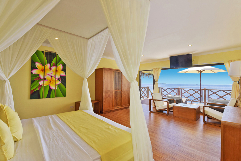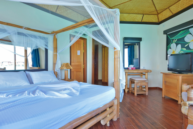 Die komfortabel und modern eingerichteten Zimmer und Bungalows des Resorts sind mit Annehmlichkeiten wie einer Regendusche, Bademänteln, einem Föhn, Kaffee-/Teezubereiter, Minikühlschrank, Sat.-TV, Telefon und Safe ausgestattet. Alle Zimmer verfügen außerdem über einen Balkon oder eine Terrasse mit Sonnenliegen und WLAN.