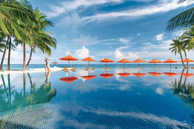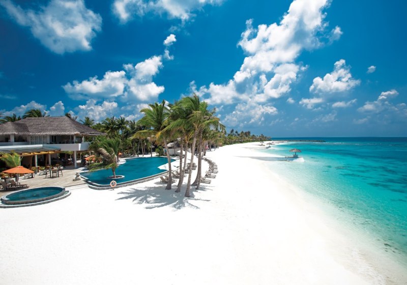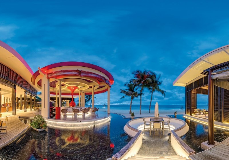 Die Anlage aus dem Jahr 2018 bietet 137 Villen am Strand und über der Lagune. Servicepunkte wie Rezeption, Boutique, Butlerservice und Roomservice greifen nahtlos ineinander. Mit Kinderclub, Spielzonen, Erwachsenenbereichen und zwei Pools – einer davon exklusiv für Erwachsene – steuert Ihr Euren Tag bewusst. Abends klingen Live-Musik und DJ-Sets entspannt über die Wege.