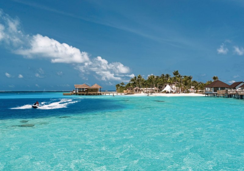 Die Lage auf den Malediven verbindet direkten Strandzugang mit einem Hausriff am Außenriff. Zwei Inseln sind über einen Holzsteg vereint, sodass Ihr Euch schnell zwischen ruhigen und lebhafteren Bereichen bewegt. Der Transfer erfolgt per Schnellboot in etwa 50 Minuten, praktisch und geradlinig organisiert.