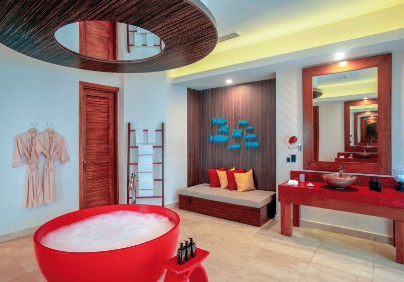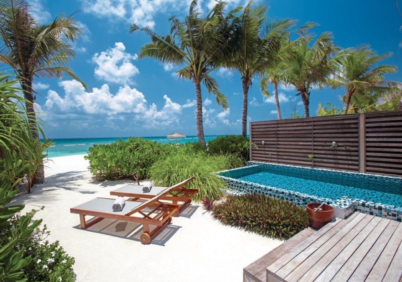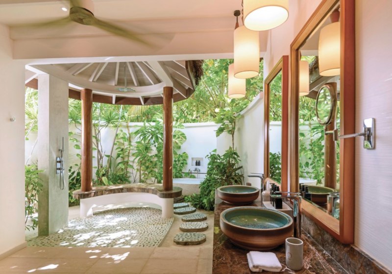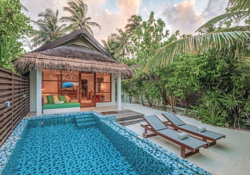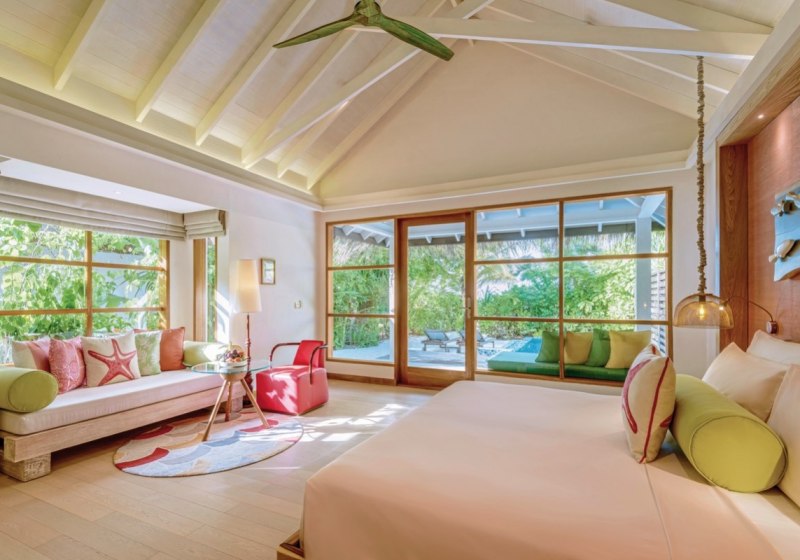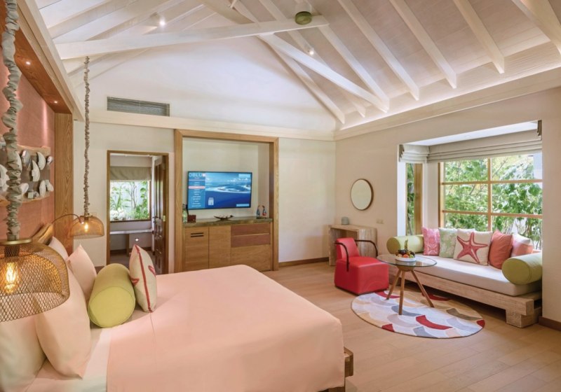 Die Bäder bieten Dusche und/oder Wanne, teilweise halb offen, teils mit Außendusche oder Außenbadewanne. Terrassen oder Sonnendecks sind möbliert und führen direkt zum Strand oder Meer; ausgewählte Kategorien verfügen über Privatpool. Aufdeck-Service ist inklusive, in der SELECT Ocean Villa ergänzt ein Butlerservice. Familien freuen sich über die 2 Bedroom Beach Pool Suite.