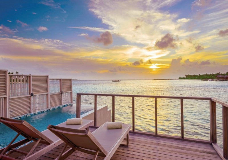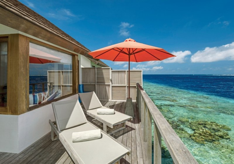 - Lagunenvillen: Überwasser-Sonnendecks führen direkt ins Meer – kurzer Weg.