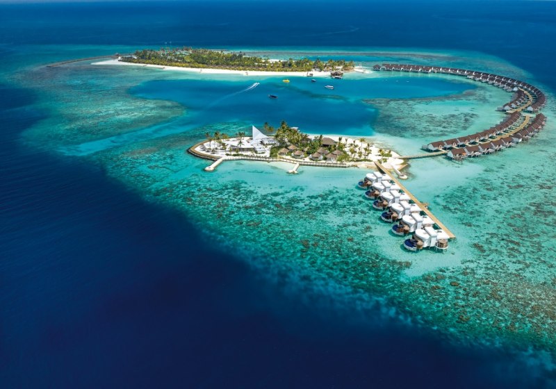 Oblu Select at Sangeli empfängt Euch auf zwei Inseln, verbunden durch einen Holzsteg, eingerahmt von Sandstrand und einem Hausriff. Das Ambiente wirkt großzügig und zugleich klar strukturiert. Ihr bewegt Euch zwischen ruhigen Zonen und belebten Bereichen, wählt Rückzug oder Aktivität nach Tagesstimmung. Familien, Paare und Tauchfans finden hier präzise zugeschnittene Bereiche.
