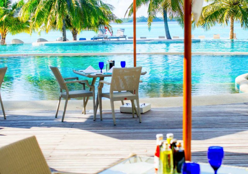 Mehrere Restaurants setzen auf internationale Küche und Meeresfrüchte; das Kandooma Café übernimmt eine tragende Rolle im Tagesablauf. Dazu kommen die Bar „The Deck“ für Sundowner-Momente über dem Wasser und eine Pool-/Snackbar für die unkomplizierte Stärkung zwischendurch. Die Rückmeldungen bewerten das kulinarische Angebot als hervorragend. Highlight: Internationale Küche mit deutlichem Meeresfrüchte-Fokus.