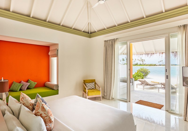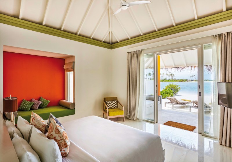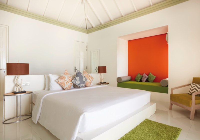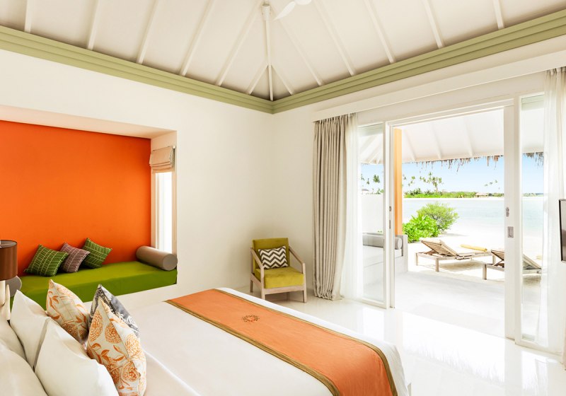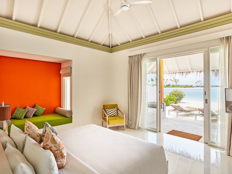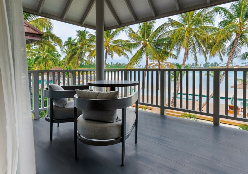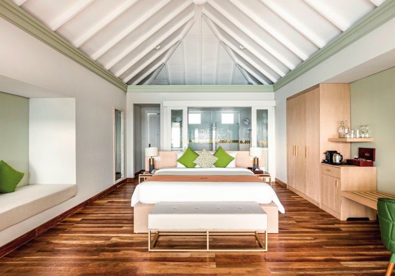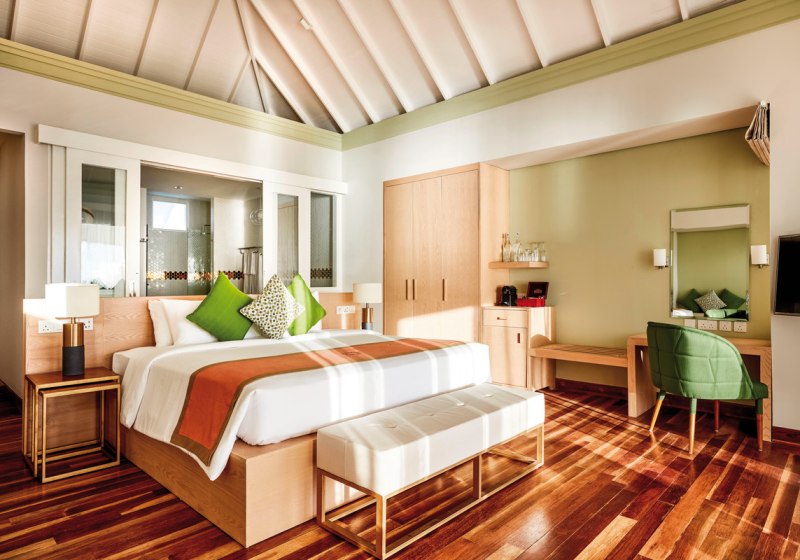 Euer Rückzugsort folgt klaren Linien und funktionalen Details. Beach Pavilions bieten etwa 50 Quadratmeter mit Dusche, Klimaanlage, TV, Safe, Minibar, Kaffee- und Teezubereiter sowie Balkon oder Terrasse zur Meerseite. Über dem Wasser laden Water Villas mit rund 64 Quadratmetern, Badewanne und Dusche, möbliertem Sonnendeck, Meerblick und direktem Zugang zur Lagune ein.