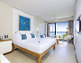 Das Hotel hat 100 Zimmer, verteilt auf Gebäude mit drei Stockwerken. Sie haben die Wahl zwischen Doppelzimmern zur Gartenseite, Standard-Zimmern zur Bergseite und Superior-Zimmern mit Meerblick. Alle Einheiten sind modern und elegant ausgestattet. Die Farben Weiß und Türkis setzen schöne Kontraste zu warmem Holz. In Ihrem Zimmer steht WLAN kostenlos zur Verfügung. Ferner finden Sie einen Deckenventilator und Föhn, Kaffee-und Teezubereiter sowie Sat-TV und Telefon vor. Gegen Gebühr nutzen Sie Safe und Minibar. Alle Doppelzimmer verfügen über eine individuell regulierbare Klimaanlage.Gastronomie und Restaurants