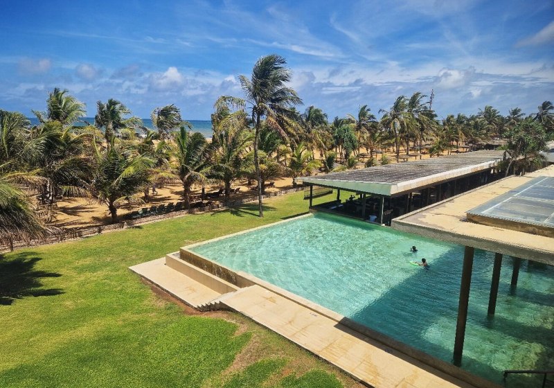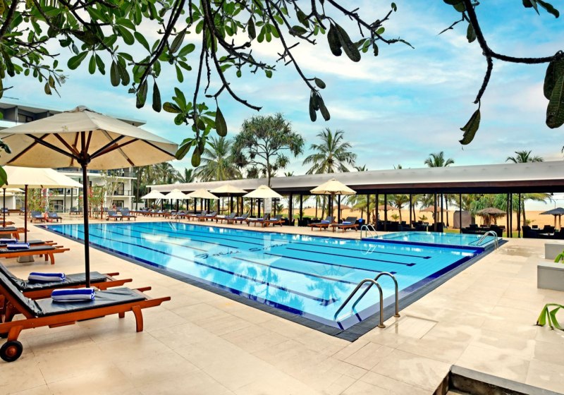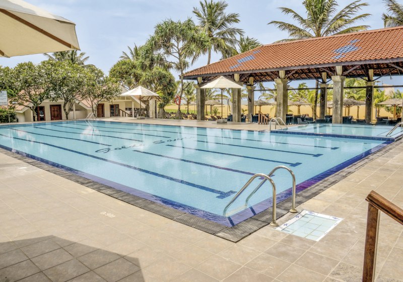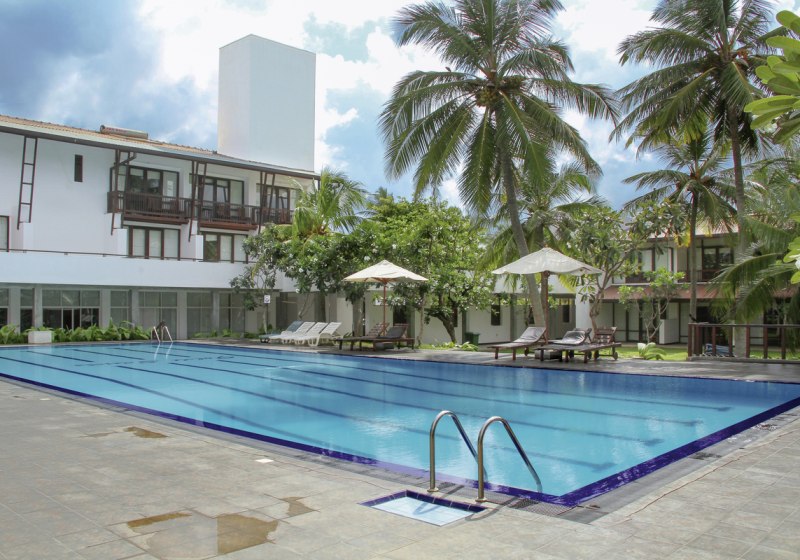 Direkt am Sandstrand von Negombo erlebt Ihr im Goldi Sands ein entspanntes Strandhotel mit klarer Struktur. Zwei Pools und ein Whirlpool bilden das Herz der Anlage, dazu liegen breite Sonnenbereiche am Wasser. WLAN im gesamten Hotel, eine Lobby mit Rezeption und kurze Wege schaffen unkomplizierte Tage am Meer.