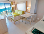 Die Zimmer sind ansprechend und komfortabel gestaltet, jedes Zimmer ist mit einer Klimaanlage, einem Balkon und einer Kitchenette ausgestattet. Weiterhin sind sie mit modernen Annehmlichkeiten wie Satelliten-TV, Telefon, Kühlschrank und Safe ausgestattet. Alle Zimmer bieten einen atemberaubend seitlichen Meerblick. Sowohl Einzelzimmer als auch Apartments sind verfügbar, um den unterschiedlichen Bedürfnissen der Gäste gerecht zu werden.