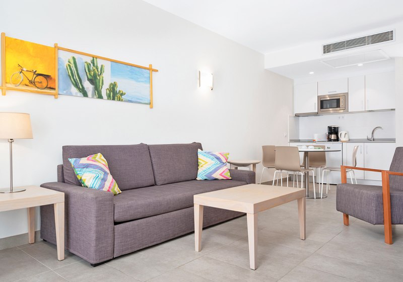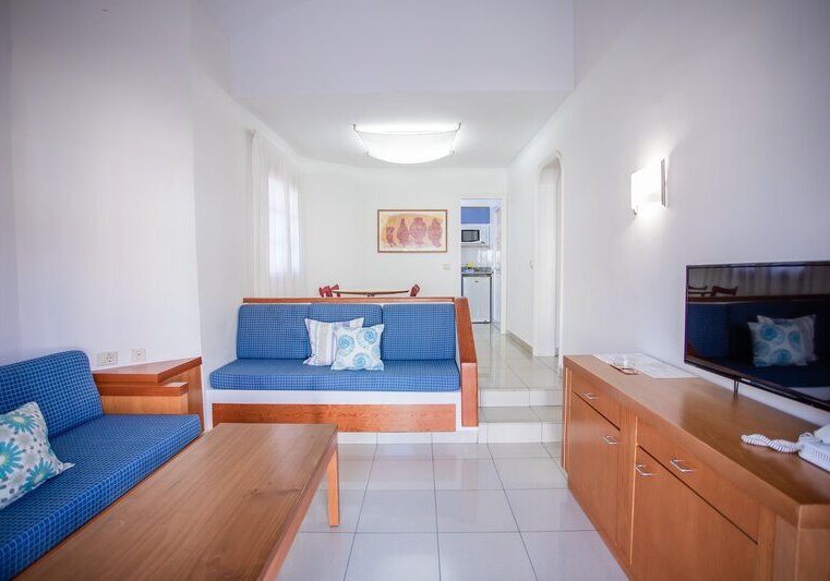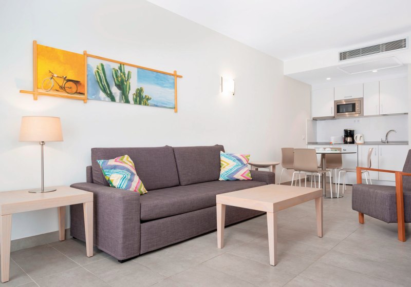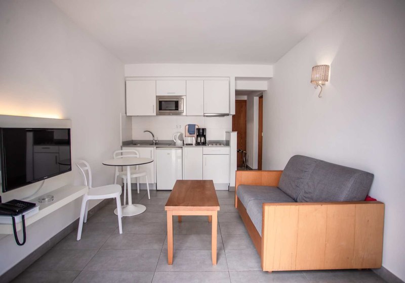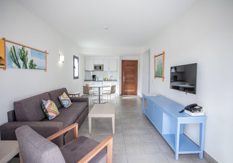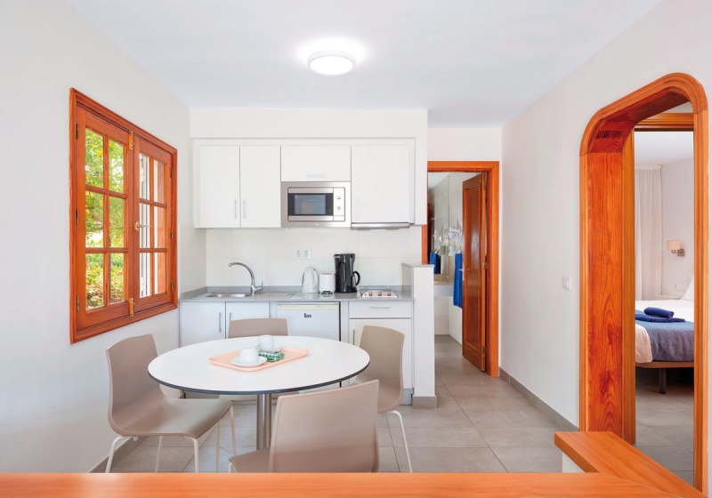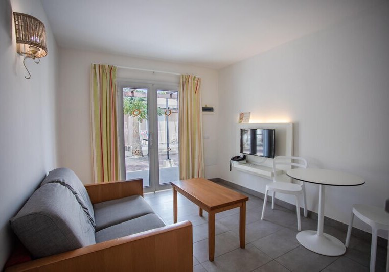 Ihr wohnt in Apartments mit separatem Schlafzimmer, Wohnbereich und Terrasse. Die Kitchenette ist mit Kühlschrank, Herd, Mikrowelle, Toaster, Wasserkocher und Kaffee-/Teezubereiter ausgestattet. Klimaanlage, TV, WLAN, Safe und Telefon gehören zur Grundausstattung. Badezimmer mit Dusche oder Wanne, Haartrockner und Bademantel runden den Komfort ab.