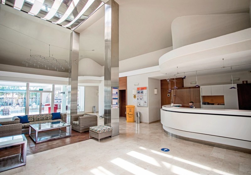 Praktische Services wie Gepäckaufbewahrung, Wäscheservice und SB-Wäscherei erleichtern längere Aufenthalte. Vor Ort findet Ihr Supermarkt, Wechselstube, Mietwagenverleih und Parkplatz. Ein kostenloser Shuttleservice verbindet das Hotel mit dem Strand. 137 Einheiten, Baujahr 1985, renoviert 2023, Kategorie 3 Sterne.
