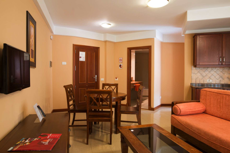 Die Apartments des El Galeon sind geräumig und komfortabel, mit allen Annehmlichkeiten, die man für einen unvergesslichen Aufenthalt braucht. Sie verfügen über ein separates Schlafzimmer und Wohnzimmer, eine voll ausgestattete Küche und einen Balkon.