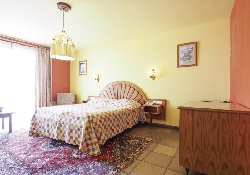 Wer mehr Raum wünscht, wählt eine Juniorsuite; dort ist der Schlafbereich teilweise optisch abgetrennt. Die Gestaltung bleibt sachlich, mit Fliesenboden, Sitzbereich und Heizung für die kühleren Höhenlagen. Für Familien stehen passende Zimmer bereit; Kinderbetten sind verfügbar. So entsteht ein ruhiger Rückzugsort nach Touren und Poolstunden.