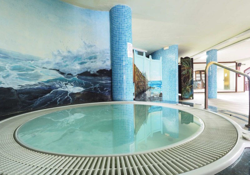 Im Mittelpunkt stehen Wasser und Wärme: Süßwasser-Außenpool für sonnige Stunden und ein beheizter Innenpool, wenn der Wind oben am Hang frischer weht. Sauna und Whirlpool bringen Muskulatur und Kopf zur Ruhe. Nach Bedarf bucht Ihr Massagen; zusätzlich sind Dampfbad und Hamam genannt.