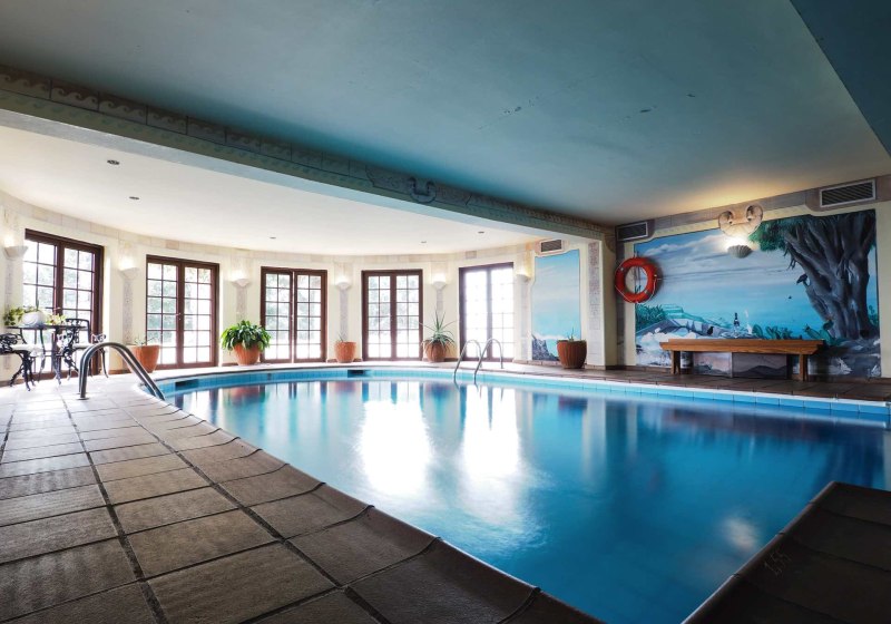 - Pools & Wärme: Außenpool, beheizter Innenpool, Sauna und Whirlpool für Erholung.