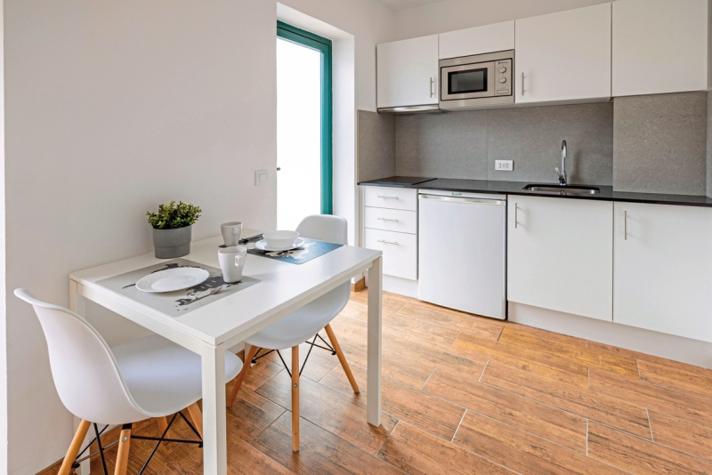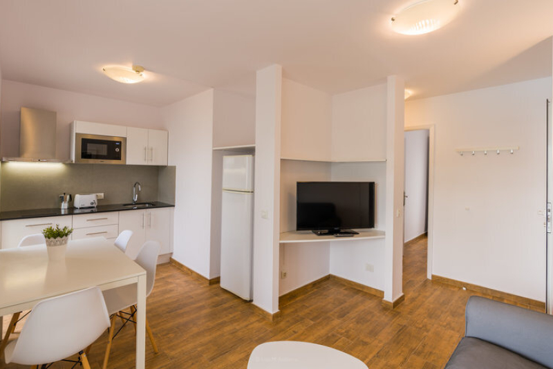 Das Hotel bietet eine Verpflegungsvariante ohne Verpflegung an. Die Apartments sind jedoch mit Küchen und Essecken ausgestattet, die es den Gästen ermöglichen, ihre Mahlzeiten nach ihren Vorstellungen zuzubereiten. In unmittelbarer Nähe zum Hotel gibt es zahlreiche Restaurants und Bars, die den Gästen eine Vielzahl von gastronomischen Angeboten bieten.Ausstattung