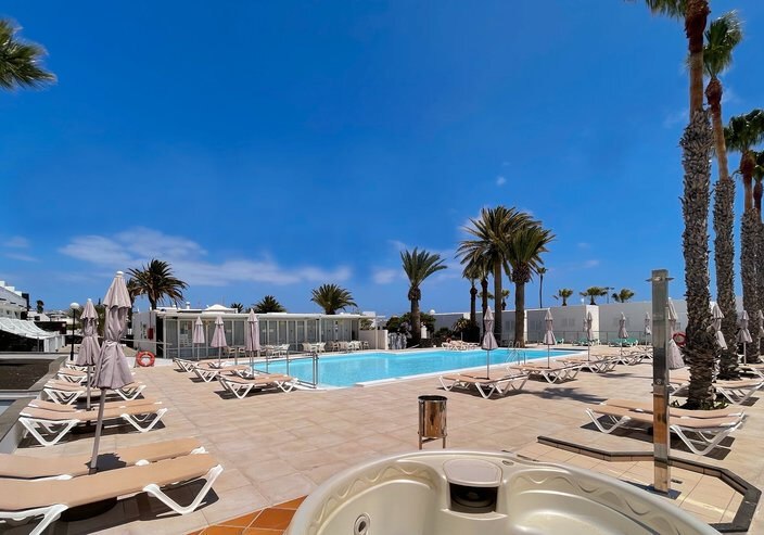 Im Arena Dorada Apartments wohnt Ihr in einem Apartmenthotel, das auf unkomplizierte Freiheit setzt: viel Platz, private Kitchenette und kurze Wege. Die ruhige Nebenstraße führt Euch in wenigen Schritten zur Strandpromenade der Playa Grande. 68 Apartments und 12 Studios verteilen sich über niedrige Gebäude mit Gartenbereichen und Sonnenterrassen. Baujahr 1973, gepflegt und funktional, mit bewusst lockerem Urlaubsrhythmus und klaren Services.