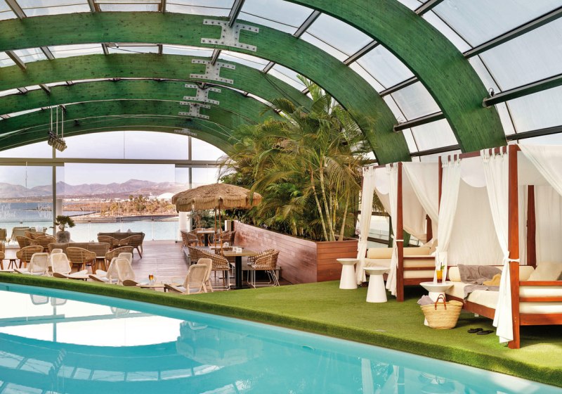 • Wettersicher: Beheizter, überdachter Süßwasserpool mit Sonnenterrasse und Liegen.