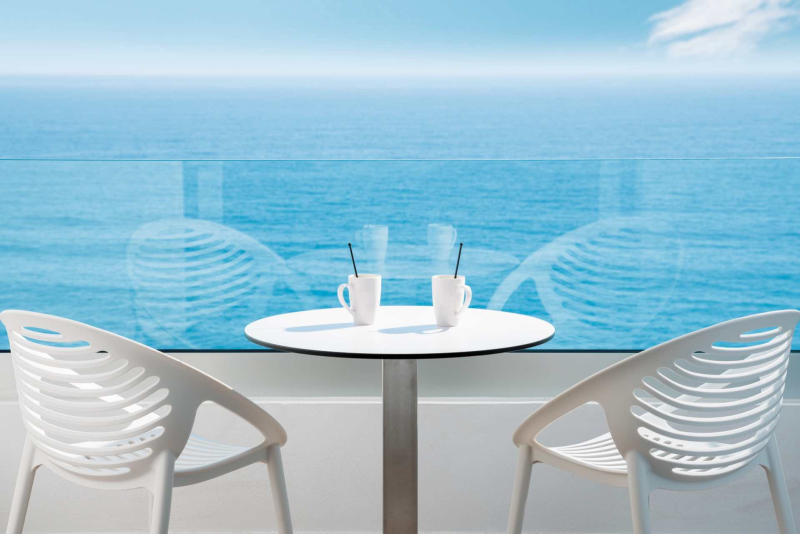 Die Juniorsuiten mit Meerblick sind freundlich gestaltet und etwa 26 Quadratmeter groß. Jede Suite besteht aus einem Schlafzimmer und einem Wohnbereich, der durch einen offenen Durchgang getrennt ist. Die Ausstattung beinhaltet ein Bad/WC, Flachbildschirm, Föhn, Kühlschrank, Mikrowelle, Musikkanal, Sat-TV, Telefon und Wasserkocher. Jede Suite hat auch einen Balkon und WLAN ist inklusive. Für Sicherheit sorgt ein Safe, der gegen Gebühr erhältlich ist.
