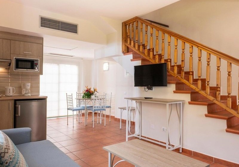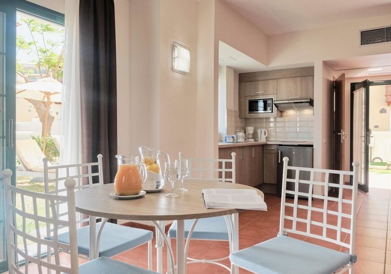 Ihr wohnt in einer Anlage mit 383 Einheiten: Apartments, Bungalows und einige Villen/Häuser bieten viel Raum für Familien und Paare. Küchenzeilen mit Kühlschrank, Mikrowelle sowie Tee- und Kaffeemaschine geben Euch Unabhängigkeit, separate Schlafzimmer und Sofabetten schaffen klare Zonen. Balkon oder Terrasse, teilweise mit Meerblick, erweitern den Wohnraum. Highlight: Fünf Zimmer sind rollstuhlgerecht mit barrierefreiem Badezimmer.