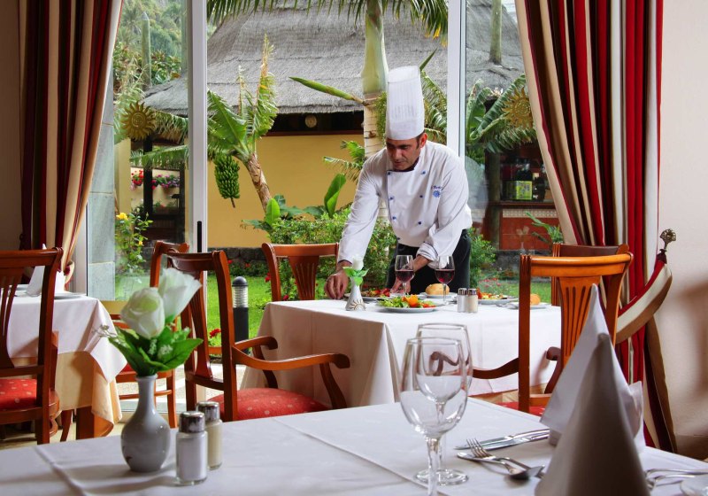 Bei der Verpflegung stehen Optionen wie Frühstück, Halbpension und All-Inclusive bereit; Snacks, Kindermenüs sowie vegetarische, glutenfreie oder Diätgerichte werden aufgeführt. Das schafft Flexibilität – vom frühen Kaffee bis zum späten Glas auf der Terrasse. Highlight: Zwei À-la-carte-Optionen erweitern das Buffet um klare kulinarische Profile.