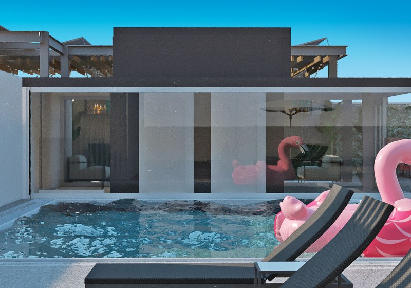• Liegestühle • Außenpool (beheizt) • Sonnenschirme • Sonnenterrasse • Badetücher • Pool