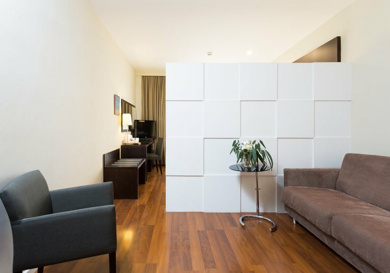Die Zimmer verbinden klare Funktion mit vertrauten Komfortdetails. Zentral gesteuerte Klimaanlage, Flachbild-TV, kostenloses WLAN und ein gratis Safe bilden die Basis. Je nach Kategorie stehen Balkon oder Terrasse zur Verfügung, teils mit Stadt-, Innenhof- oder Gartenblick. Auf Anfrage erhaltet Ihr kostenlose Babybetten; Familienzimmer und Schlafsofa-Optionen erleichtern die Planung mit Kindern.