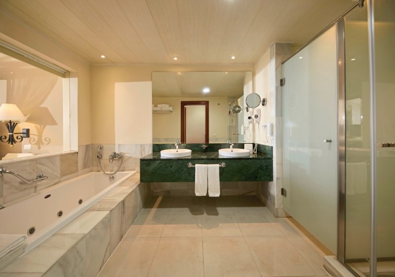 Mit 5 offiziellen Sternen, All-Inclusive und 12 Restaurants sowie 11 Bars seid Ihr kulinarisch breit aufgestellt. Die Infrastruktur wirkt umfassend: kostenloses WLAN, Rezeption, Shops und ein Konferenzbereich mit Internetzugang. Das Ambiente bleibt ungezwungen, die Wege führen Euch von der Lobby über Gartenflächen zu Pools, Strand und der Strandbar.