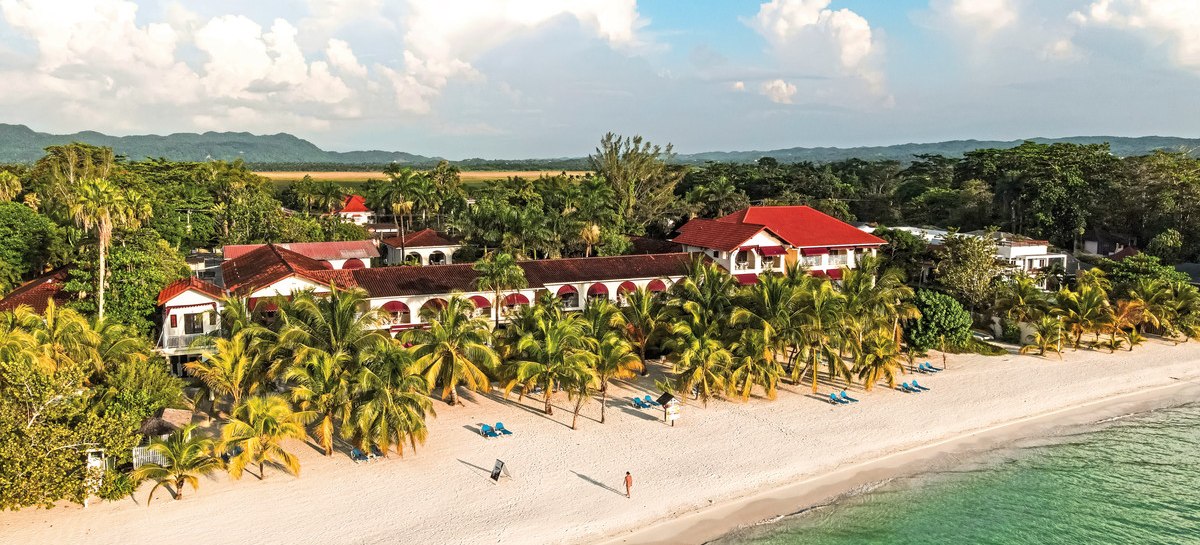 Direkter geht es kaum: Das Charela Inn liegt unmittelbar am Seven Mile Beach, einem der bekanntesten Strandabschnitte in Negril. Der feinsandige Küstenstreifen beginnt praktisch vor Eurer Tür, sodass Ihr Bade- und Strandtage ohne Umwege plant. Das Ortszentrum von Negril erreicht Ihr nach etwa drei Kilometern – nah genug für spontane Abstecher, weit genug für eine ruhige Basis am Wasser.
