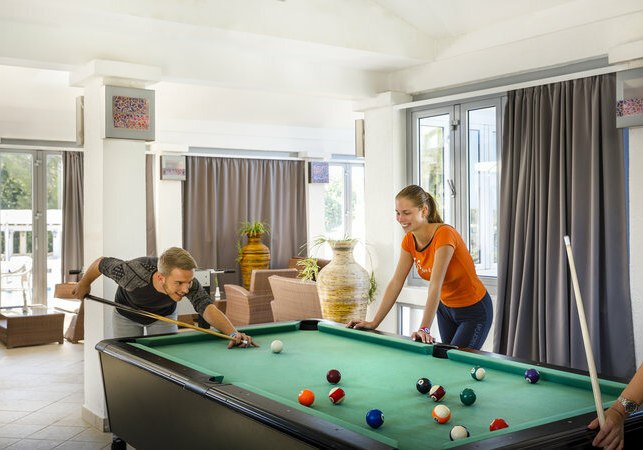 Abends wird es lebendig: Livemusik und Abendanimation schaffen eine freundliche, gesellige Kulisse, die Ihr mit einem Drink an der Bar begleitet. Tagsüber bringt das Team Schwung mit Sportwettbewerben, Zumba, Aerobics und Aqua Aerobic. Wer es spielerisch mag, greift zu Darts, Billard oder Tischfußball.