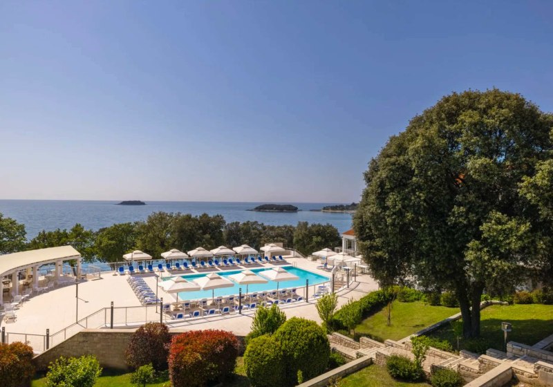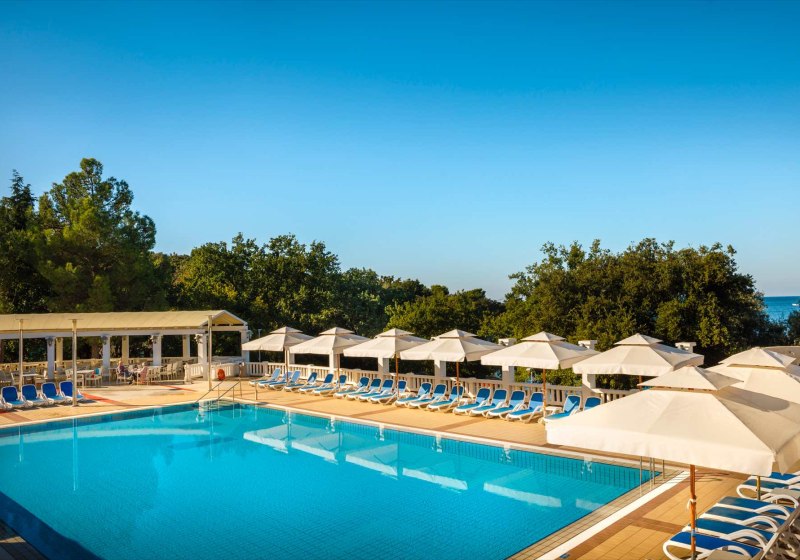 Im All Inclusive Resort Funtana erwartet Euch ein lebhaftes All-Inclusive-Resort direkt an der Felsküste von Funtana, nahe Vrsar. Die Atmosphäre ist ungezwungen, freundlich und aktiv, getragen von viel Bewegung an Pool und Strand sowie durchdachten Familienangeboten. Ihr bewegt Euch zwischen schattigen Terrassen, Gartenwegen und dem Blick über die Adria, während Kinder im Miniclub eigene Abenteuer entdecken.