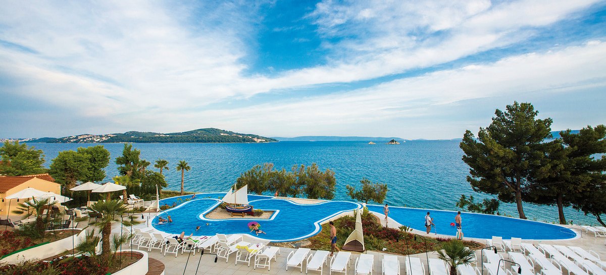 Mit Hanganlage über dem Meer, strukturiertem Strandzugang und Animation samt Miniclub richtet sich die Anlage an Familien und aktive Paare. Die Distanzen nach Trogir, zum Flughafen Split und nach Split City halten Wege kurz und Planung überschaubar.