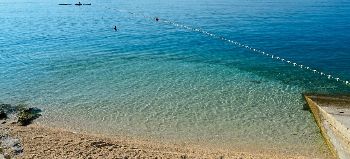 Bei Trogir in Kroatien gelegen, profitiert Ihr von einer Hanganlage über dem Meer, umgeben von Wald. Der Strandbereich kombiniert Sand- und Kieszonen mit einem Badeplateau, Liegen, Schirmen, Umkleiden und Duschen. Laut Distanzangaben liegt der Strand bei etwa 500 Metern.