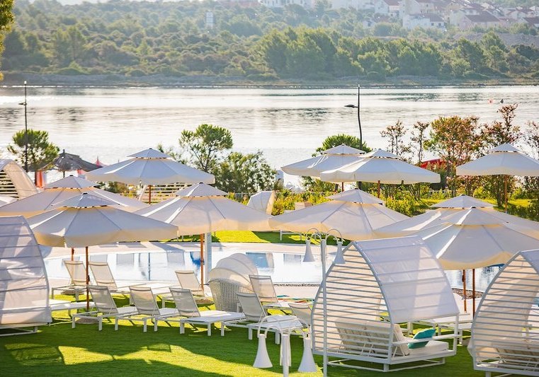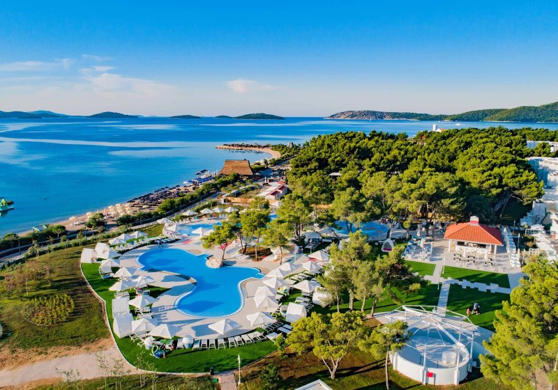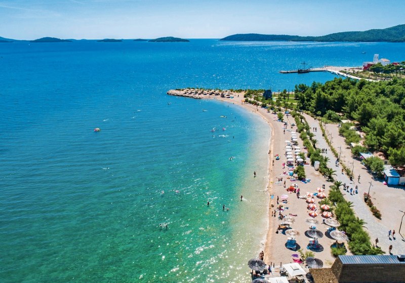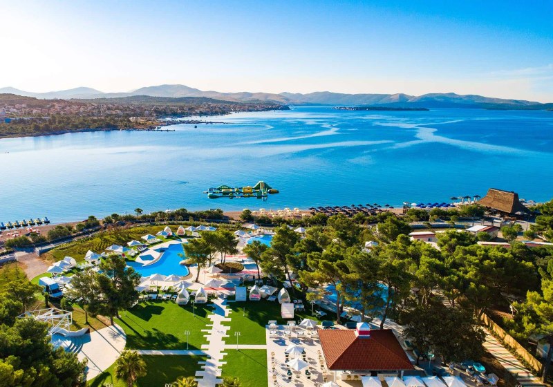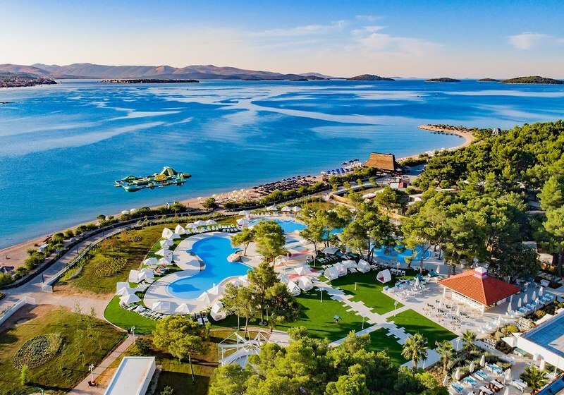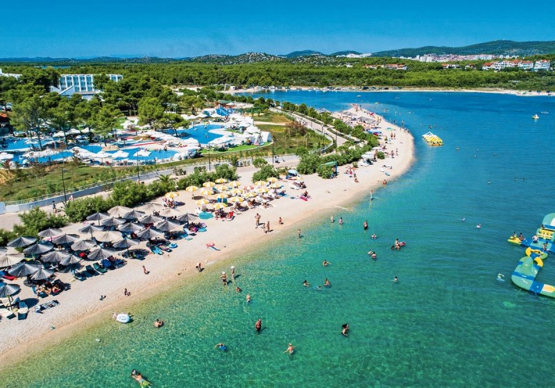 Ihr wohnt direkt am Strand der Amadria-Halbinsel in der Bucht von Šibenik. Das Zentrum von Šibenik liegt rund 6 km entfernt, sodass Ihr zwischen maritimem Resortgefühl und historischem Stadtrundgang flexibel wechseln könnt. Die Halbinselstruktur sorgt für klare Orientierung und unmittelbaren Zugang zum Wasser.