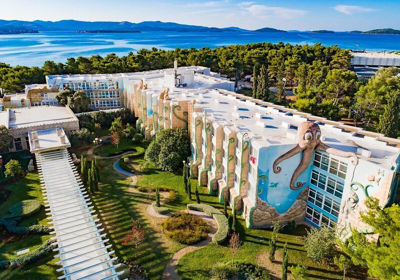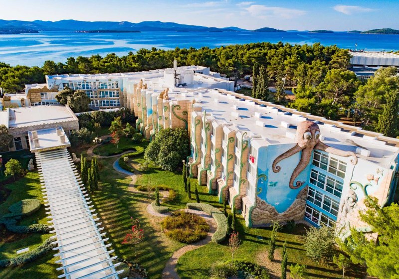 Amadria Park Kids Hotel Andrija empfängt Euch im Amadria Hotelkomplex auf einer Halbinsel bei Šibenik – direkt am Strand, mit kurzen Wegen zu Pool, Terrassen und dem lebendigen Resortleben. Familien finden durch Miniclub, Kinderpool und Aquapark im Resort ein klares, kindgerechtes Profil. Ihr wohnt in einem dreistöckigen Haus mit Aufzügen und WLAN im gesamten Hotel.