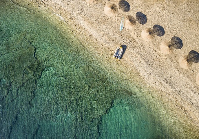 • Strandzugang: Ausgestattete Bereiche mit Schirmen führen nah ans Wasser.