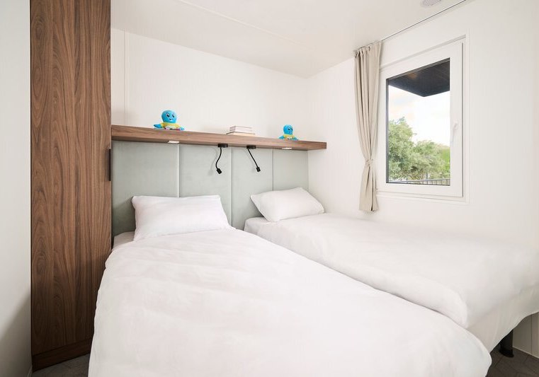 Ihr bezieht Mobile Homes mit zwei Schlafzimmern und einem Wohnbereich mit Kitchenette. Zur Ausstattung zählen Mikrowelle, Wasserkocher, Herd und Kühlschrank; WLAN und Safe sind kostenlos. Eine individuell regulierbare Klimaanlage, Flatscreen-Sat-TV und Terrasse runden das durchdachte Setup ab.