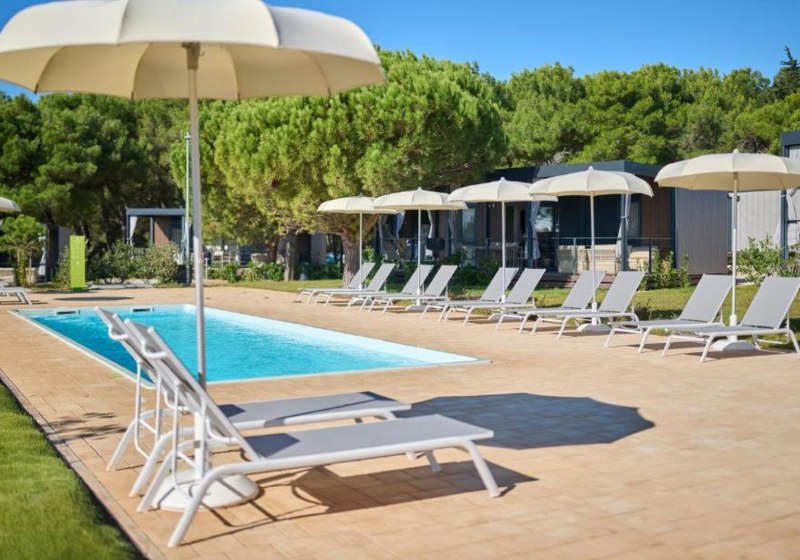 Willkommen im Aminess Planet Camping Holiday Homes Sirena, wo Ihr in modernen Mobile Homes zwischen Pinien und Adria-Luft ankommt. Das Setting wirkt ungezwungen und strukturiert: viel Raum im Freien, klare Wege, kurze Distanzen. Acht Außenpools verteilen sich über das Resort und schaffen Abwechslung zwischen Aktivsein und entspannten Stunden am Wasser.
