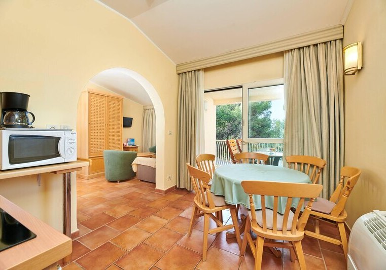 Studios und Appartements sind auf Selbstversorgung ausgelegt: Klimaanlage, Küche oder Kitchenette, Sat-TV, WLAN und Safe bilden die Basis. Balkon oder Terrasse erweitern den Wohnraum ins Freie. Bäder sind mit Dusche oder Badewanne und WC ausgestattet; in einigen Appartements stehen zwei Bäder zur Verfügung. Die Kombination aus Wohnraum, Essecke und Schlafsofa schafft Platz für unterschiedliche Routinen.