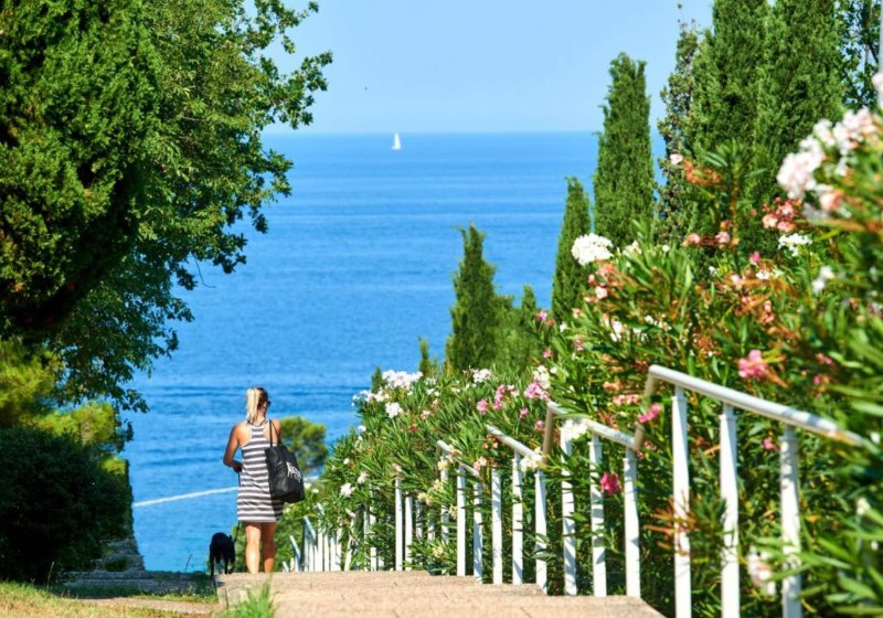 Die Lage in Plava Laguna bei Poreč verbindet Euch mit Meer und Stadt: Je nach Appartement erreicht Ihr den Strand in etwa 100 bis 400 Metern. Zur historischen Altstadt von Poreč sind es rund 3 Kilometer, ideal für spontane Ausflüge zwischen Gassen und Uferpromenade. Der Flughafen Pula liegt etwa 60 Kilometer entfernt, was die Anreise planbar macht. So kombiniert Ihr Badezeiten, Spaziergänge an der Küste und Abstecher in die Altstadt mit ihren Blickachsen aufs Meer. Die Anlage selbst bleibt Euer ruhiger Ausgangspunkt, von dem aus Ihr schnell zwischen Strand, Pool und Apartment wechselt.